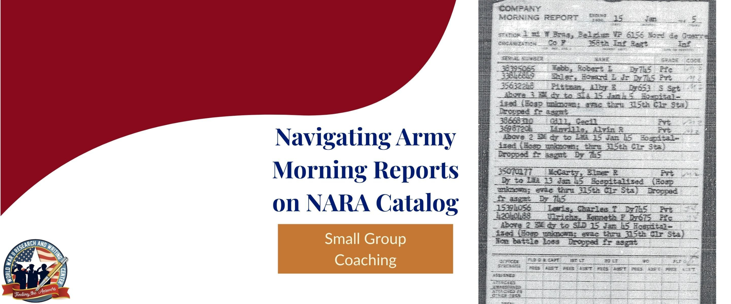 Army Morning Reports are one of the most important records you need to obtain to reconstruct an Army or Army Air Force WWII Veteran's service. Some of these are digitized on NARA Catalog but are challenging to search.