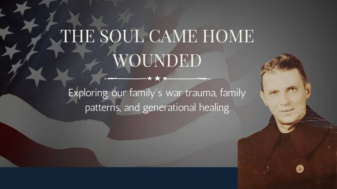 The Soul Came Home Wounded is a deep, guided workshop for those who have lived in the aftermath of war trauma—children and grandchildren of veterans, researchers, healers, and truth-seekers who want to understand why the veteran changed and how that trauma moved through the family line.