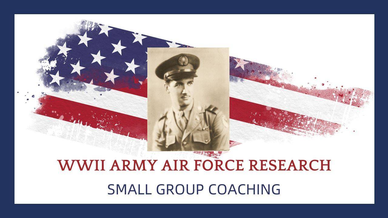 Every military branch kept records differently & some records burned. This ARMY AIR FORCE small-group 90-minute coaching session live on Zoom Meeting is designed to walk you step-by-step through a proven two-part research process, tailored specifically Army Air Force. I will help you reconstruct service even if the record burned.